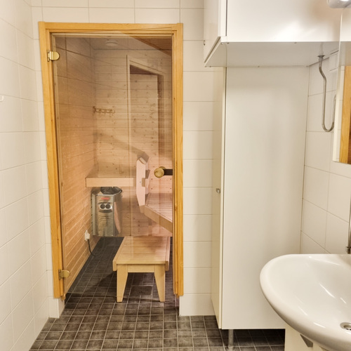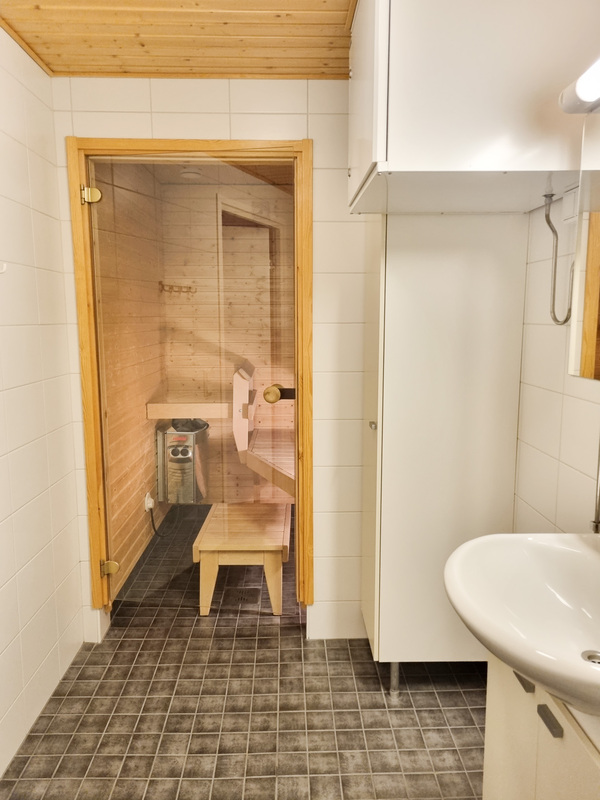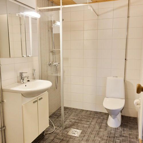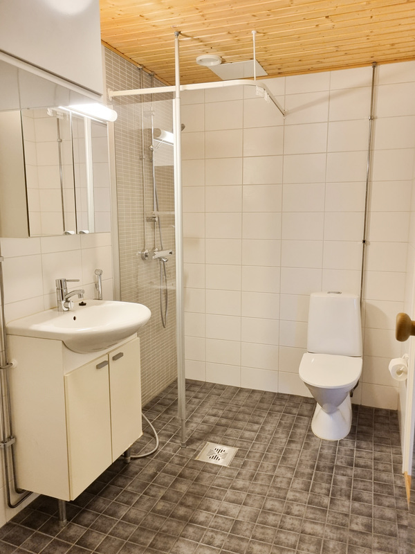Varusteet: suihku, suihkuseinä, lattialämmitys, kiinteät valaisimet, peilikaappi
