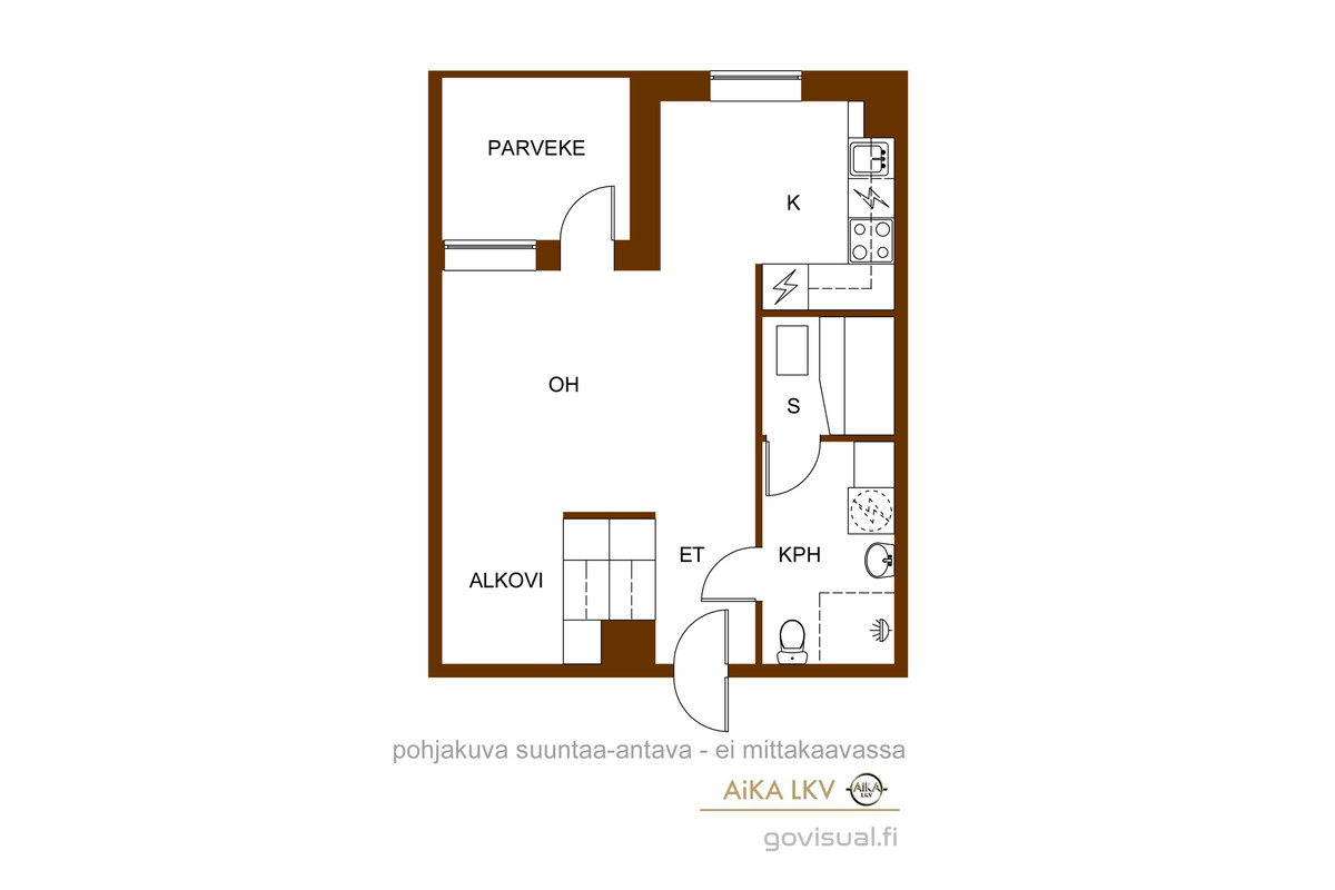 Varusteet: jääkaappipakastin, keraaminen liesi, liesituuletin, astianpesukone