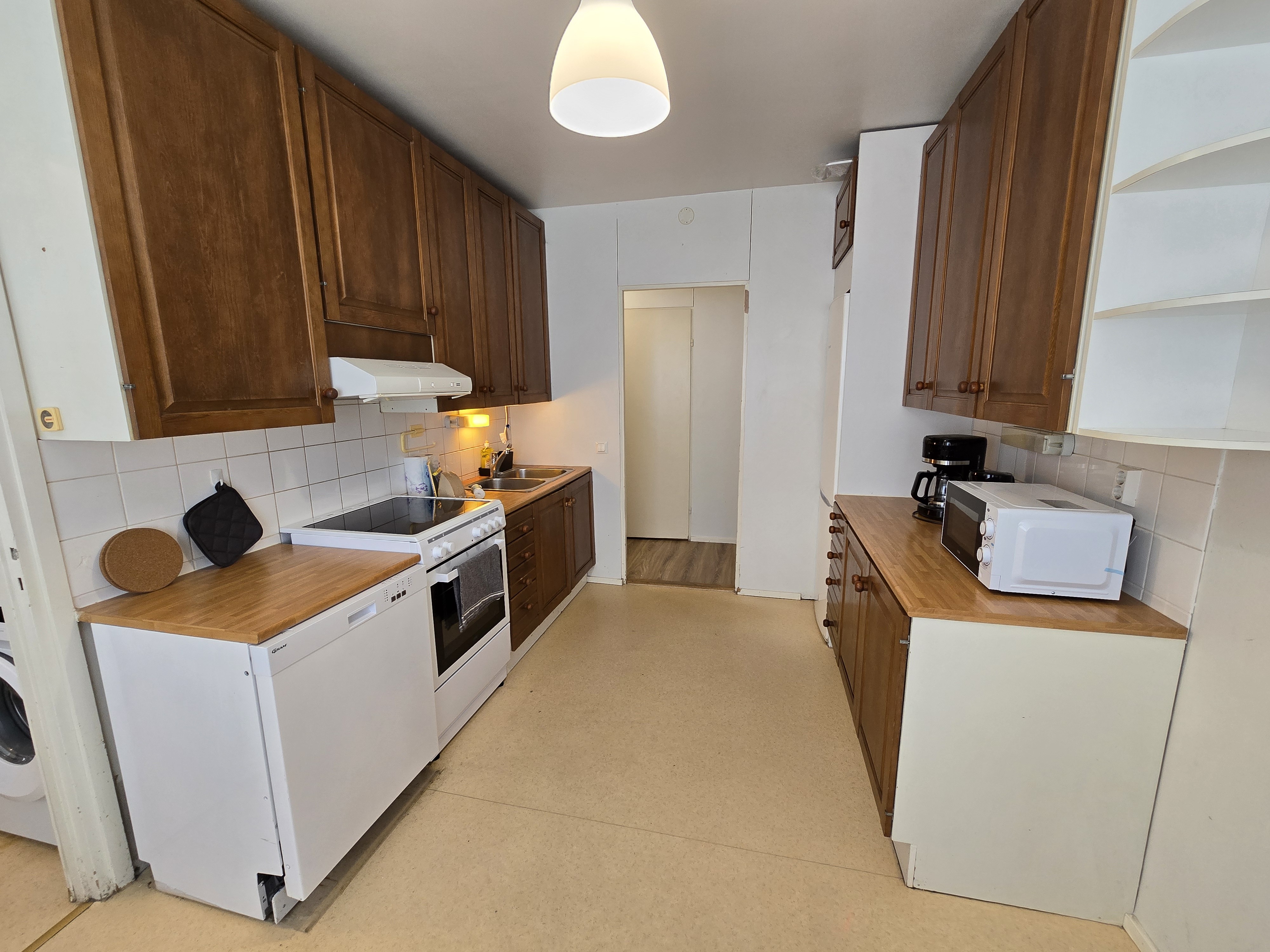 Varusteet: jääkaappipakastin, astianpesukone, liesituuletin, keraaminen liesi